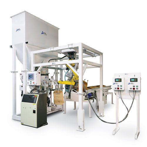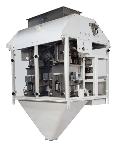 The RT 7000 model is a net-weigh, gravity-fed solution with a vibratory feature to assist the flow of difficult product. It features automatic calibration and flow gate adjustments and can fill up to 22 bags per minute, depending on the model.