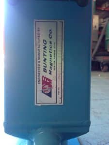 Emergency Stop (E-stop) and Main power disconnect. NEMA 12 Free Standing Motor Control Enclosure. 480V/3 Phase/60 Hz. Includes burner PID controls. Flame safeguard controls. Digital Temperature read-outs for the inlet and outlet air streams. Motor Starters for: Qty 2 – 5 HP w/ VFDs Qty 2 – 15 HP Qty 3 – 3 HP w/VFDs Qty 1 – 0.5 HP w/ VFD Qty 2 – 2 HP Qty 2– 7.5 HP motors...
