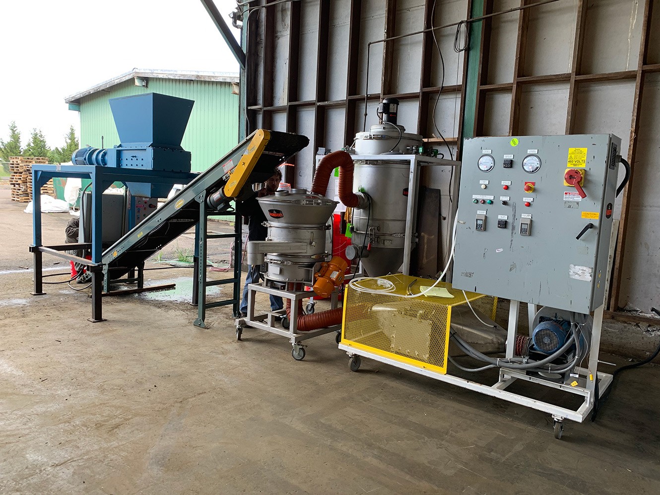 - Particle Size Reduction: a model AHS-3631 Shredder is utilized, with a capacity of 3,500 PPH with a particle size of 1” minus. A consistent particle size promotes even and thorough drying in the next processing stage.