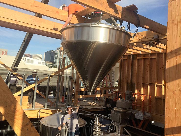 Free-standing grist cases are most common because most breweries and distilleries don’t have the headspace or ceiling strength to support them.