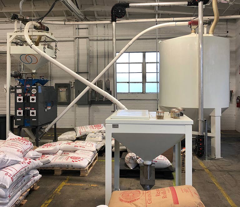 As with all our equipment, we can easily make a grist case to accommodate any space restrictions, preferences, or milling practices. They can be made any shape, any size, with any slope, any sized ports, any slope, or can be made to hang from the ceiling.