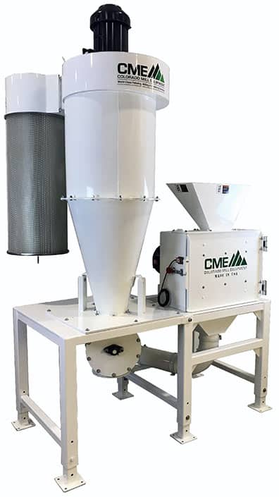 If bud isn’t shredded finely enough for drying, mills are needed to reduce the particle size for primary extraction in order to achieve the best yields. (For particle size reduction before drying, see shredders instead). Because of bud’s tendency to clog screens when wet or particularly oil-laden, mills often need to be paired with forced air to clear the screens—and remove dust. This can be accomplished with a dedicated blower—added as an option—or by connecting an external pneumatic system, in which case the extra air can also be used to convey the herb from milling to extraction or storage. Either way the blower should have a way to collect trichomes, as a statistically significant portion is lost at this step. Hammer mills are far-and-away the most effective type of mills for pre-dried herb, and are available in a number of different configurations, detailed below.
