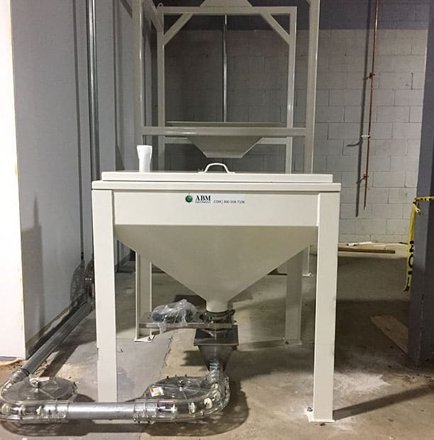 Specialty hoppers are placed in-line with silos and bulk bag unloaders to allow brewers to add specialty malt to closed conveying lines. They can be integrated with a dust collection system if you’re using one, otherwise they can simply have a dust sock over the out-port.