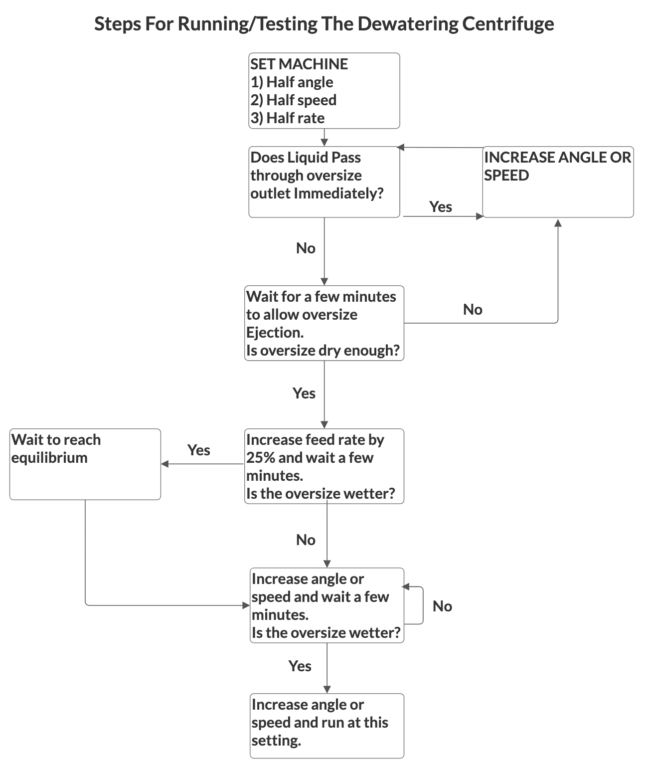 6. When running trials, the procedure as laid out in block diagram should be followed. It should be noted that gentler angles of the centrifuge will prolong the life of the mesh.
