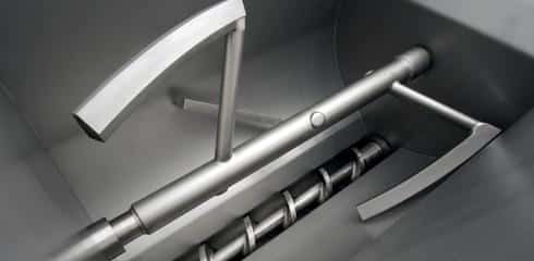 Capable of up to 146 lbs./min. with a 330 lb. hopper, the Large Processor’s Mixer/Grinder efficiently homogenizes meat and plant products by using thin paddles in the angles ribbons would normally take. As a hybrid between ribbon and paddle mixers, it strikes a balance between high homogeny and throughput while preserving the ability to mix forward and reverse. The Large Processor’s Mixer/Grinder’s variable speed motor and programmable timer also allow fast, slow, and auto mixes. It is a rugged solution for mixing any kind of meat, from fat to lean. An open-grid lid allows seasoning to be added during operation and the lid is counterbalanced for ergonomic-friendly operation.
