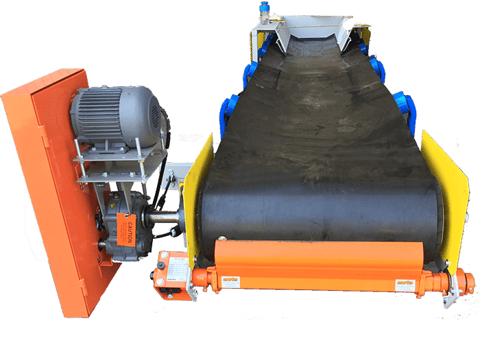 Trough conveyors are belt conveyors where the bed or idle pulleys are shaped to bend the belt and cup the product. This improves the belt’s carrying capacity by helping the product mound and provides a degree of protection from elements and jostling. Trough conveyors are used in practically endless applications, but most often in bulk and/or outdoor industries such as mining & agriculture.